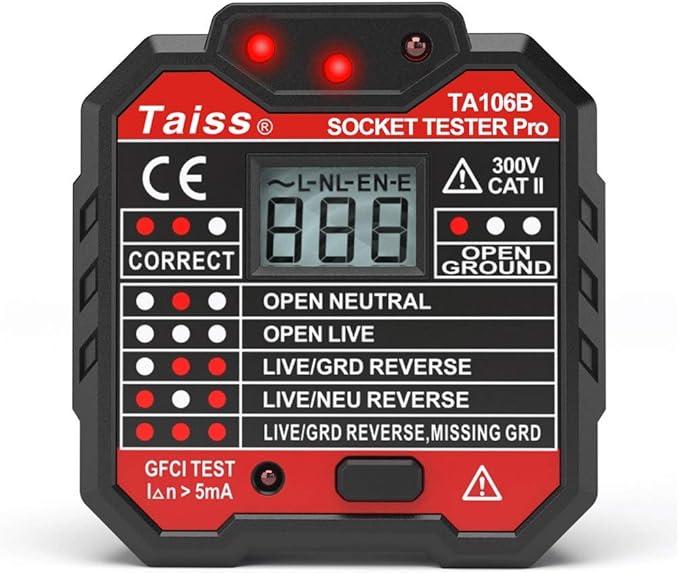 Socket Receptacle Tester Gfci Outlet Tester 48 250v Automatic Electric Power Circuit Polarity Voltage Detector Wall Plug Breaker Finder Leakage Test With Led Voltage Display Ta106b Amazon Com